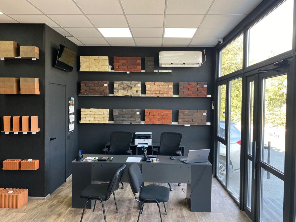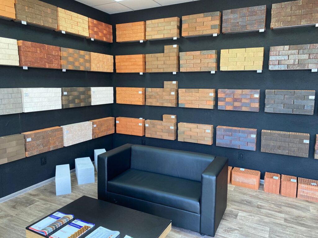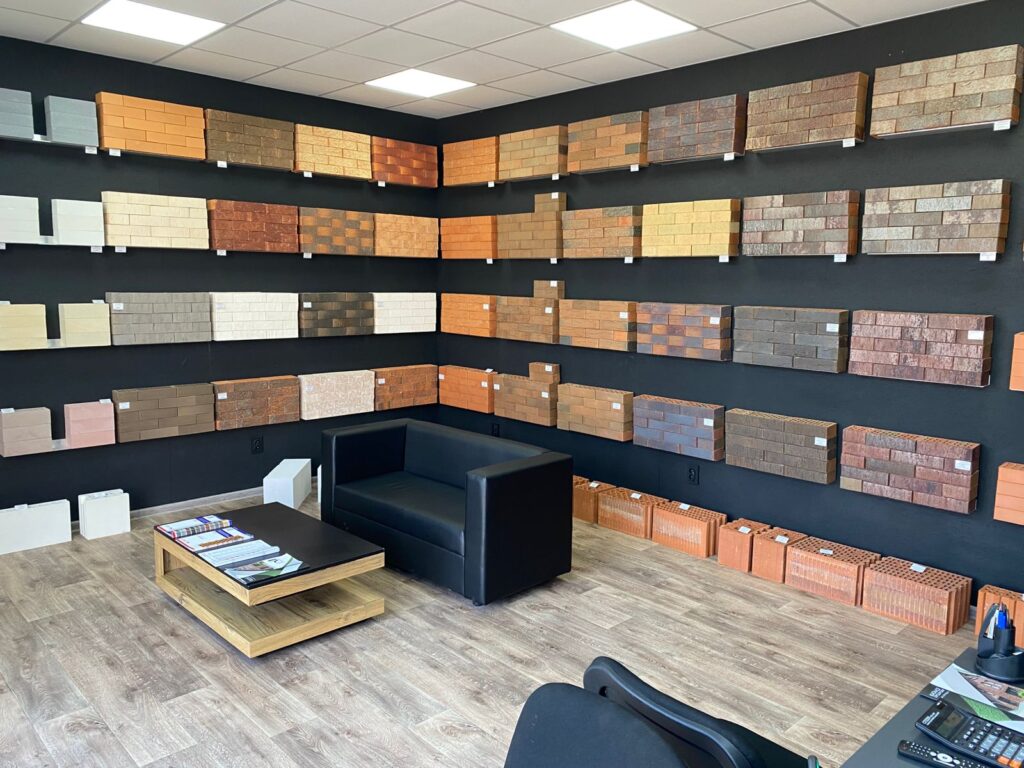 Большое внимание при создании пространства было уделено функционально продуманной демонстрационной зоне с облицовочным кирпичом, на которой представлены самые актуальные и популярные позиции продукции. При входе в шоурум посетитель попадает в открытый демонстрационный зал и переговорную зону, где в открытой части интерьера расположена «мягкая зона» для неформального общения.