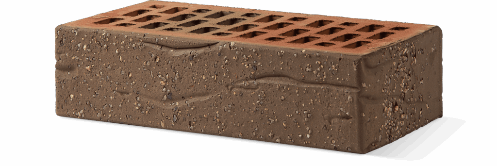 Исключительный красно-серо-черный пестрый цвет и рельефная лицевая поверхность. Производится из смеси красножгущейся глины и песка с торкретированием лицевой поверхности и крупнофракционным кварцевым песком по технологии редукционного-flash обжига. Пустотность 33 %, пустоты щелевые шириной 14 мм. Плотность 1200 кг/м³. Теплопроводность стены толщиной 120 мм при условиях эксплуатации (категория А) 0,428 Вт/м * °С. Сопротивление воздухопроницанию 22 м² * ч * Па/кг. Паропроницаемость 0,14 иг/м * ч * Па. Расход на 1 м² кладки 52 шт. Расход раствора 0,03 м³/м².
