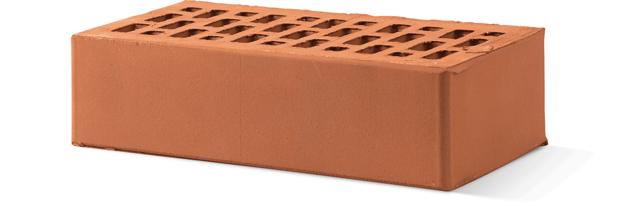 Традиционный терракотовый цвет и рельефная лицевая поверхность. Производится из смеси красножгущейся глины и песка с торкретированием лицевой поверхности песком по технологии окислительного обжига. Пустотность 33 %, пустоты щелевые шириной 14 мм. Плотность 1200 кг/м³. Теплопроводность стены толщиной 120 мм при условиях эксплуатации (категория А) 0,428 Вт/м * °С. Сопротивление воздухопроницанию 22 м² * ч * Па/кг. Паропроницаемость 0,14 иг/м * ч * Па. Расход на 1 м² кладки 52 шт. Расход раствора 0,03 м³/м².
