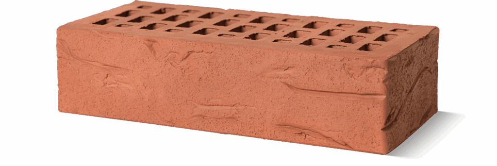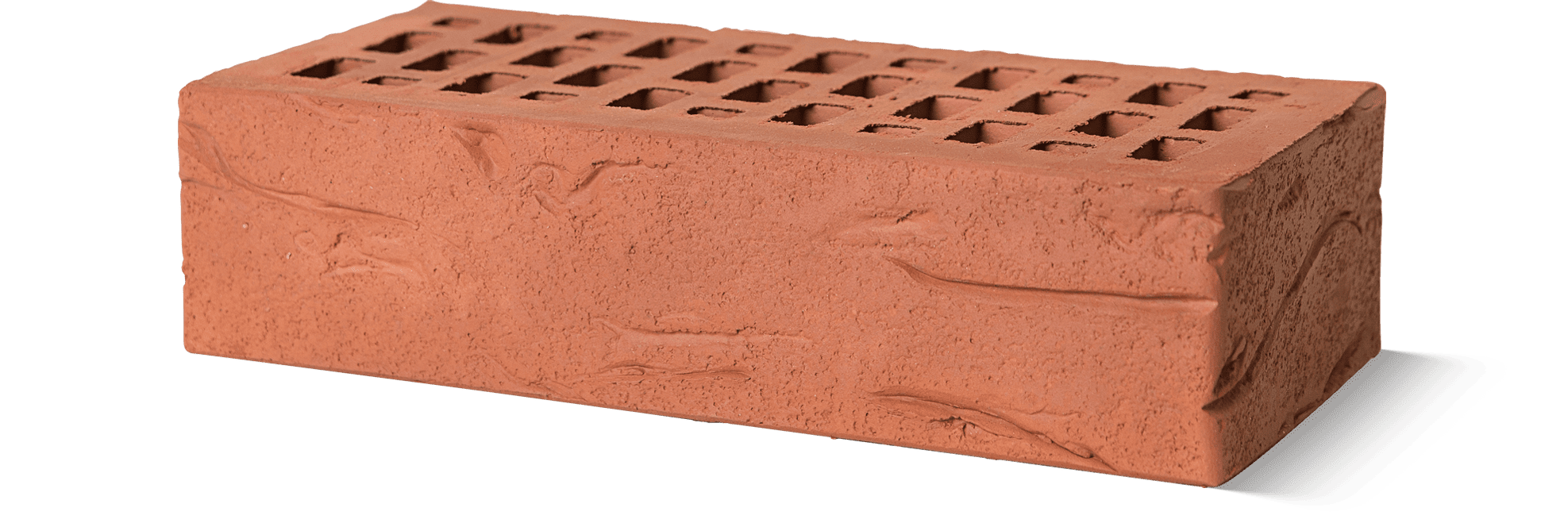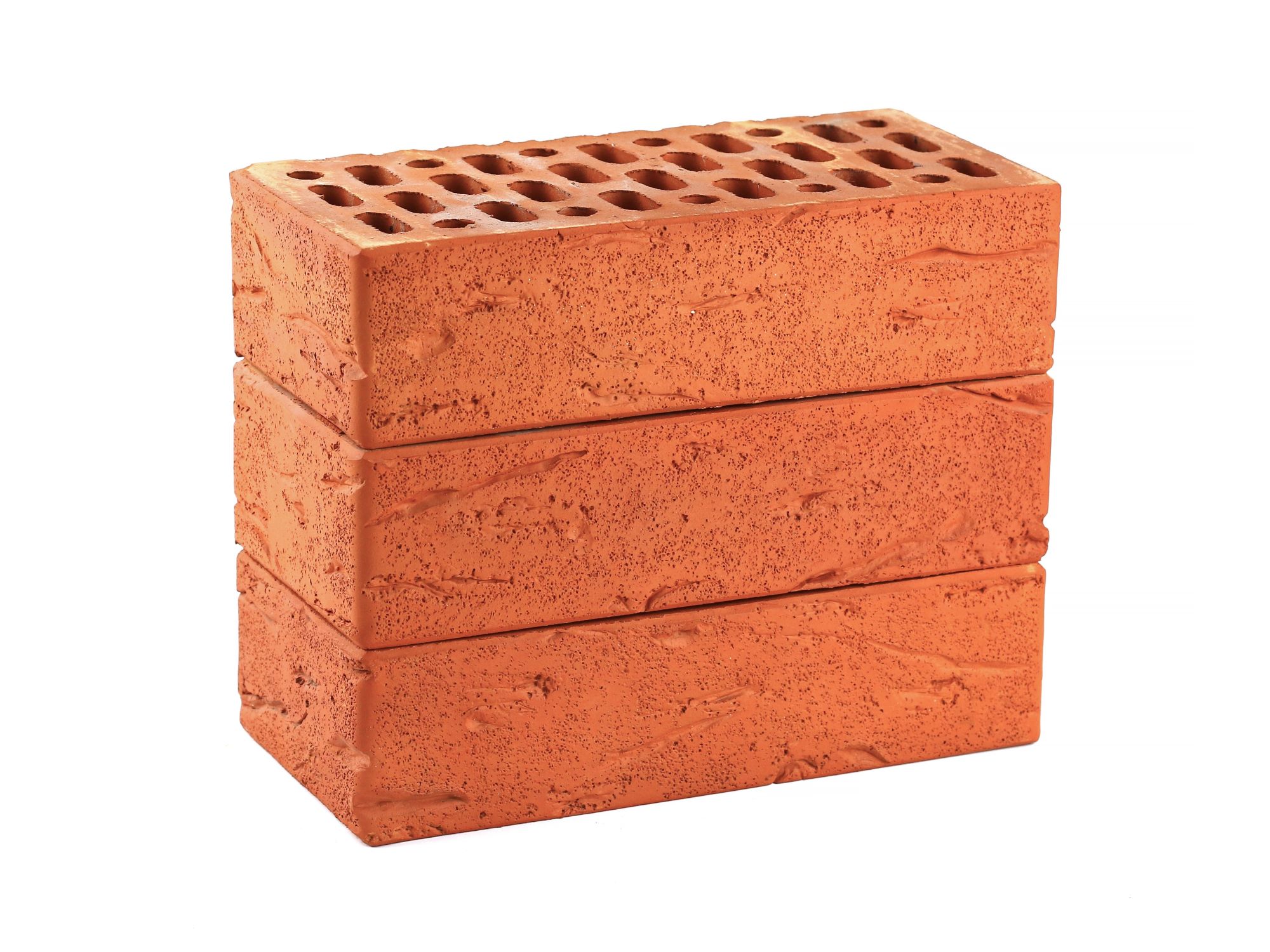 Традиционный терракотовый цвет и рельефная лицевая поверхность. Производится из смеси красножгущейся глины и песка с торкретированием лицевой поверхности песком по технологии окислительного обжига. Пустотность 33 %, пустоты щелевые шириной 14 мм. Плотность 1200 кг/м³. Теплопроводность стены толщиной 120 мм при условиях эксплуатации (категория А) 0,428 Вт/м * °С. Сопротивление воздухопроницанию 22 м² * ч * Па/кг. Паропроницаемость 0,14 иг/м * ч * Па. Расход на 1 м² кладки 52 шт. Расход раствора 0,03 м³/м².