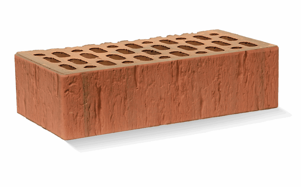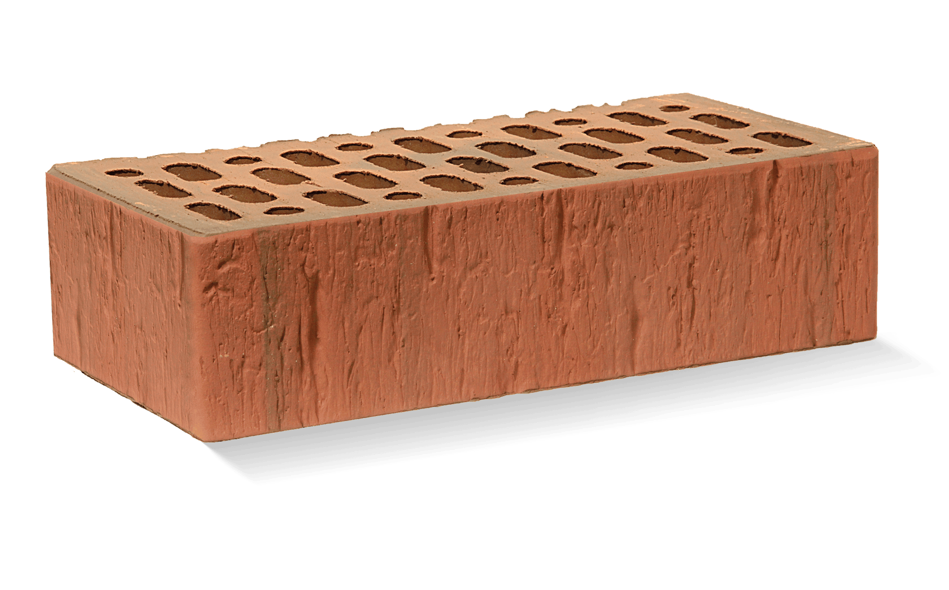 Оригинальный красно-коричневый пестрый цвет и рельефная лицевая поверхность. Производится из смеси красножгущейся глины, песка и тритетраоксида марганца по технологии объемного окрашивания и окислительного обжига. Пустотность 33 %, пустоты щелевые шириной 14 мм. Плотность 1200 кг/м³. Теплопроводность стены толщиной 120 мм при условиях эксплуатации (категория А) 0,428 Вт/м * °С. Сопротивление воздухопроницанию 22 м² * ч * Па/кг. Паропроницаемость 0,14 иг/м * ч * Па. Расход на 1 м² кладки 52 шт. Расход раствора 0,03 м³/м².