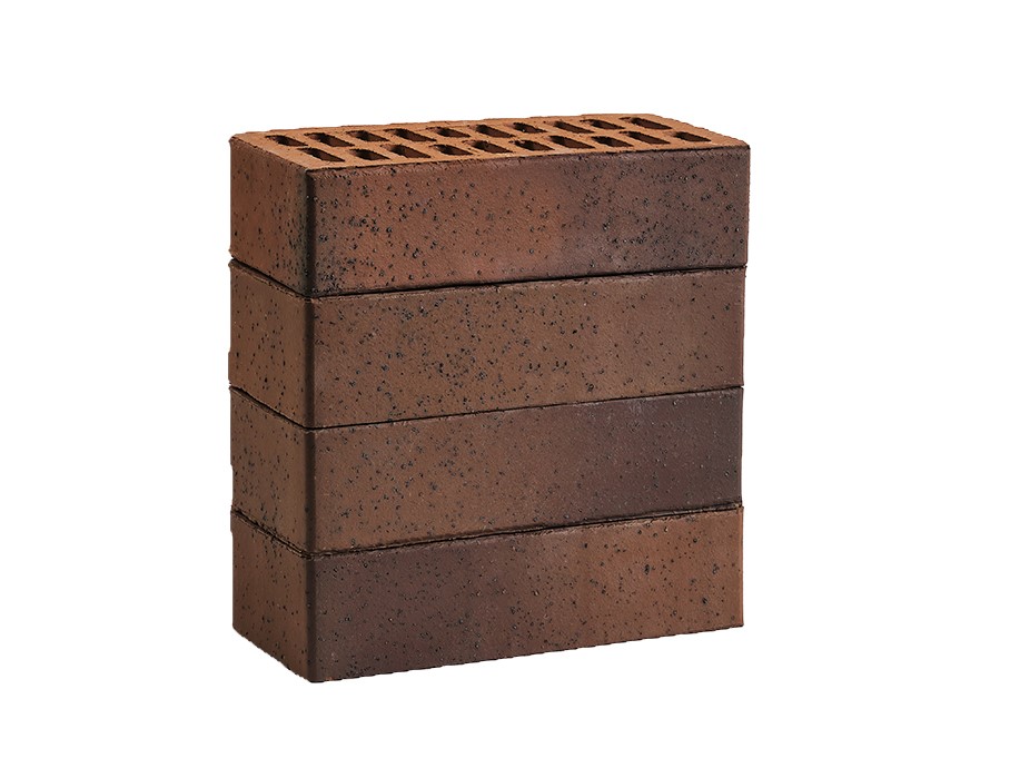 Очень оригинальный цвет. Кирпич переливается красным, коричневым и оранжевым, а текстуру придают темные крошки. «Янтарь» сделает фасад дома заметным, запоминающимся. На солнце он будет напоминать природный камень, чье название носит. Кирпич может стать хорошим акцентным решением, а может существовать и самостоятельно. Подойдет для тех, кто ищет необычное решение, готов к экспериментам.