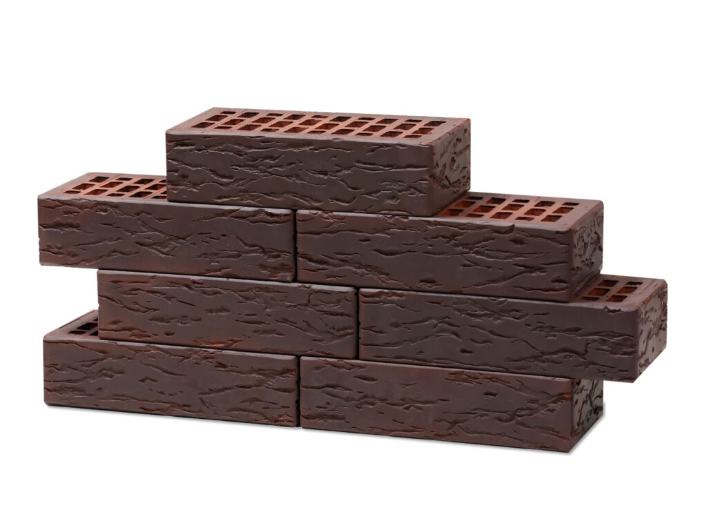 Кирпич Антик руст обладает благородными оттенками темно фиолетового цвета, полученными благодаря специальной технологии окрашивания. В одном поддоне невозможно найти двух идентичных по цвету и фактуре кирпича. Рельеф руст имитирует поверхность коры дерева, придавая дополнительный объем при различном освещении.