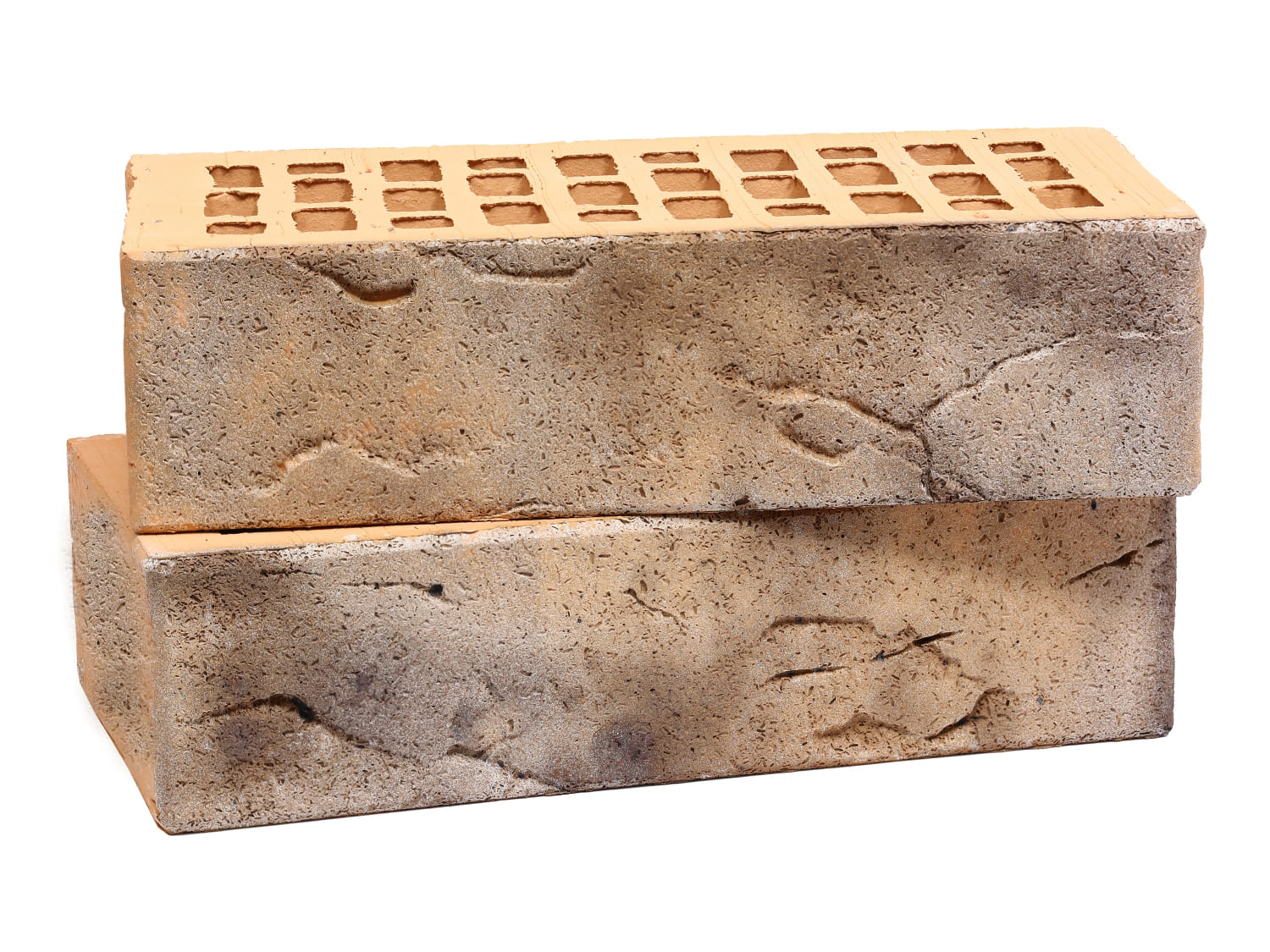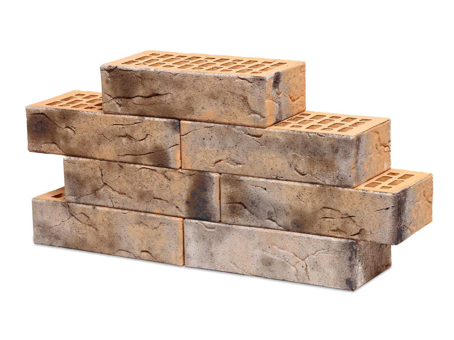 Светлая основа янтарного цвета мягко просвечивается под слоем темно-серого ангоба, создавая интересный эффект и игру цветов. Поверхность кирпича имеет фактуру, где сочетаются глубокие бороздки и мелкие вкрапления. Таким образом, создается ощущение бархатистости и плавного градиента, усиливающегося при различном освещении.