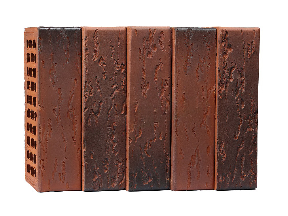 Отличительной особенностью данного вида кирпича является не только его медово-коричневые оттенки, но и характерные для флеш-технологии темные градиенты различной интенсивности. Дополнительную игру света и тени создает неглубокий руст лицевой поверхности.