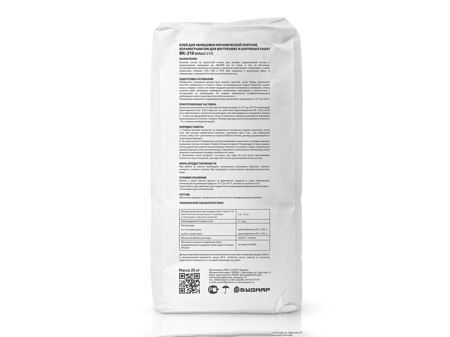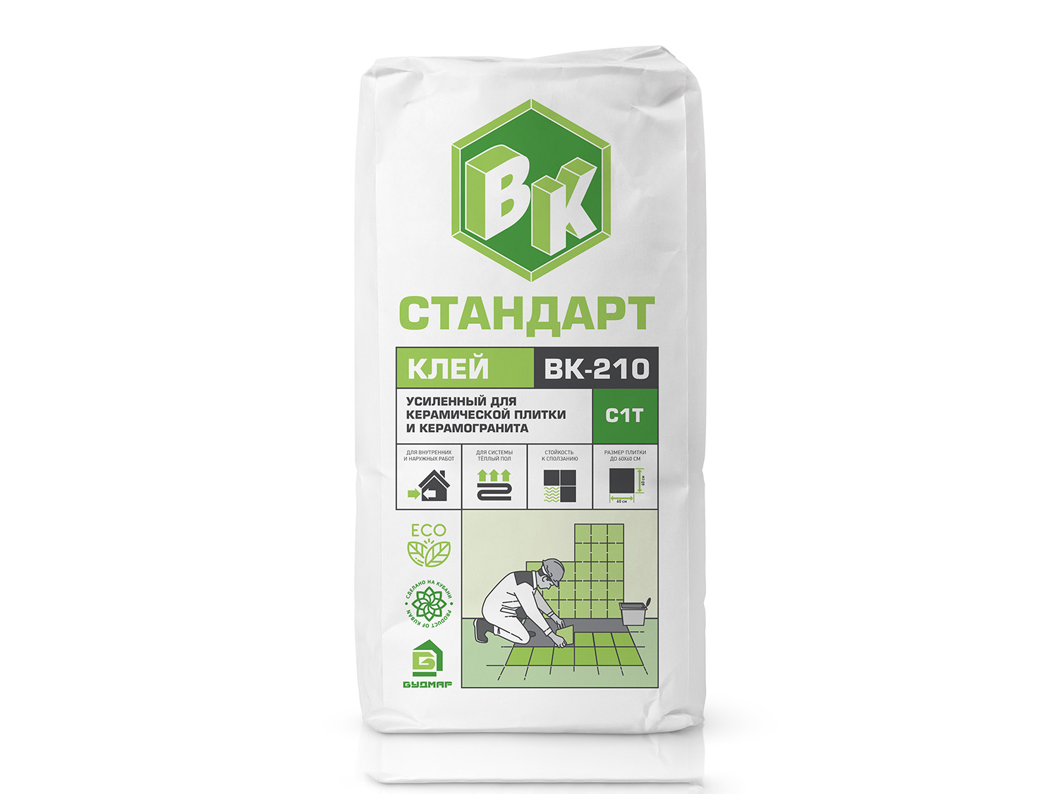 - Клей для внутренней и наружной облицовки керамической плиткой БУДМАР ВК-210