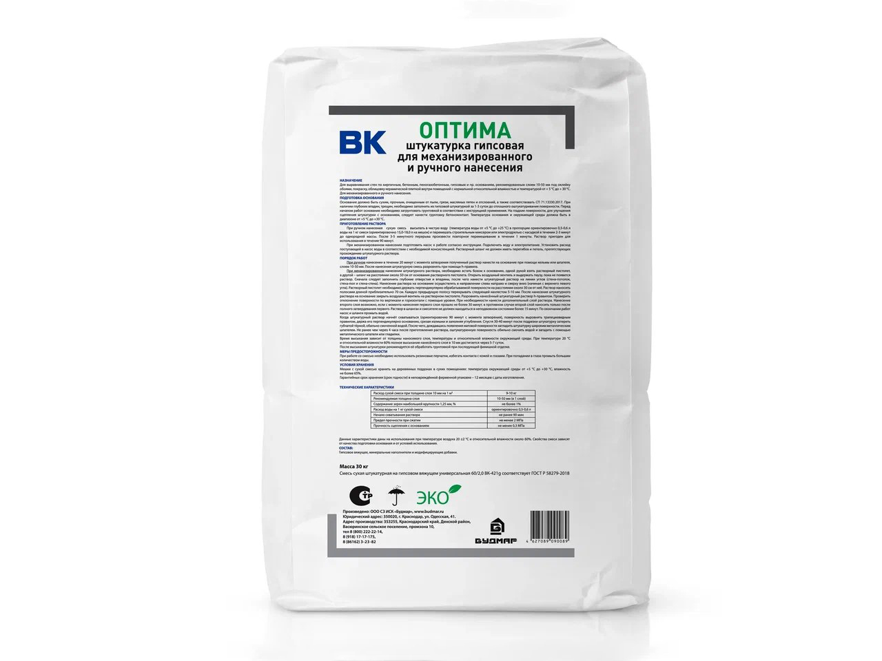 - Штукатурка гипсовая универсальная ручного и машинного нанесения БУДМАР ВК-421g