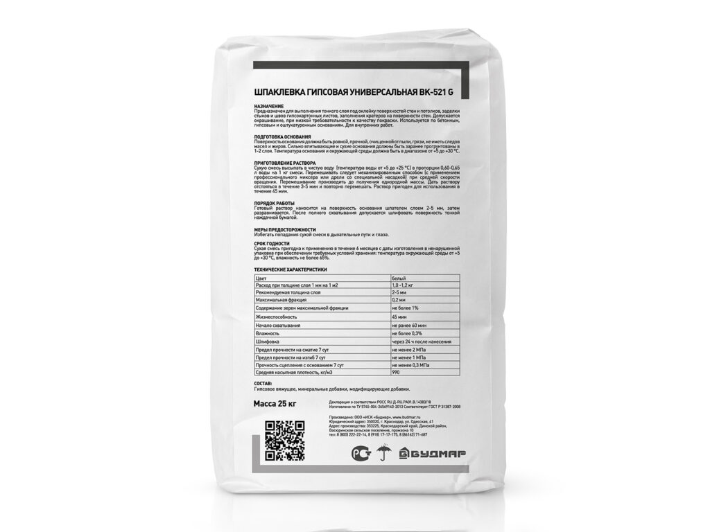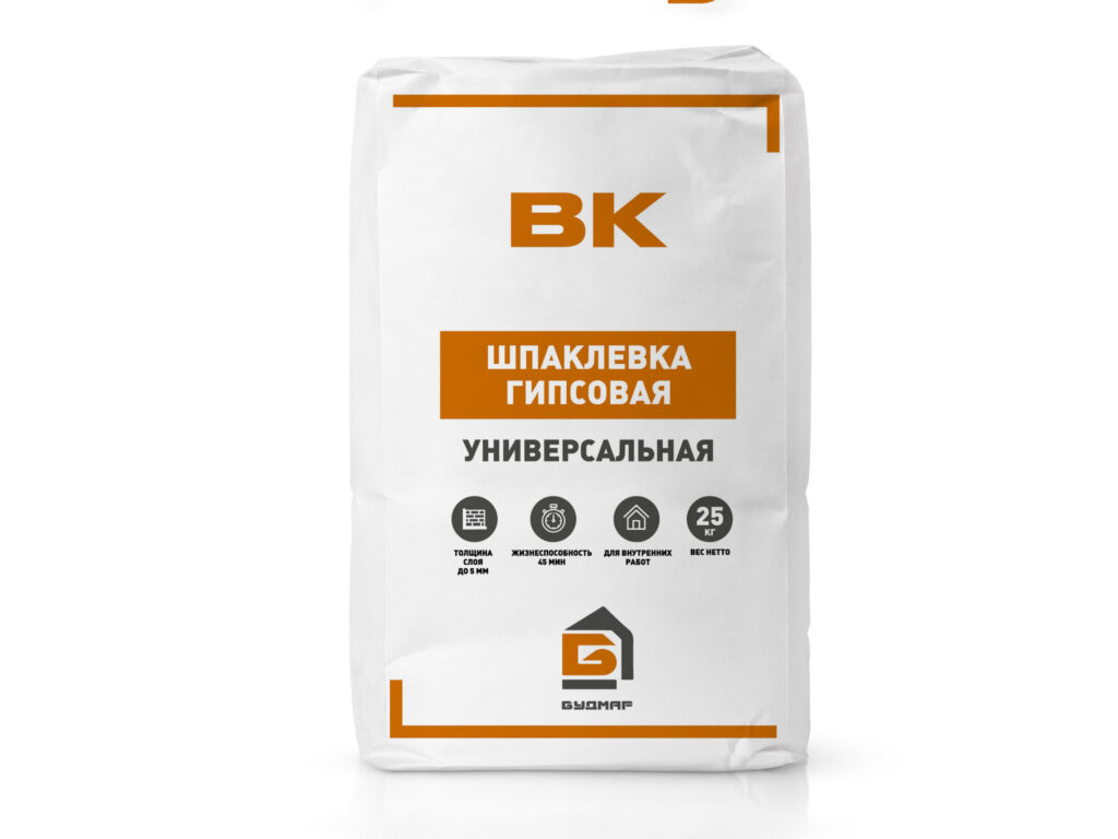 - Смесь сухая шпаклевочная стартовая гипсовая БУДМАР ВК-521g